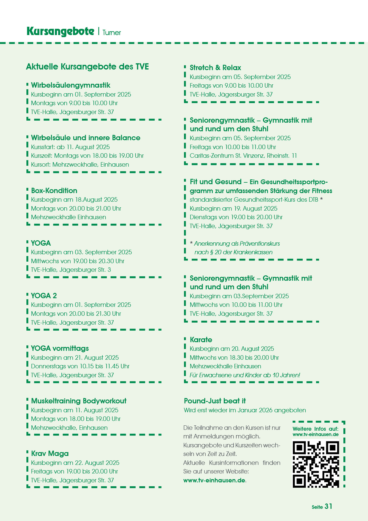 | Montag: 15:30 - 16:30 Uhr TVE Halle Einhausen |